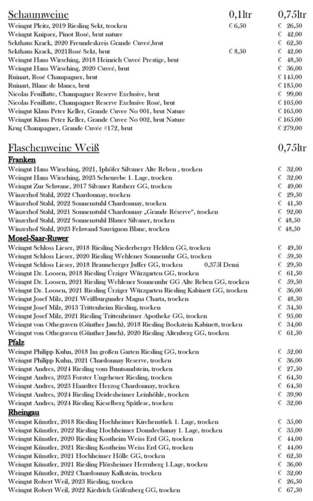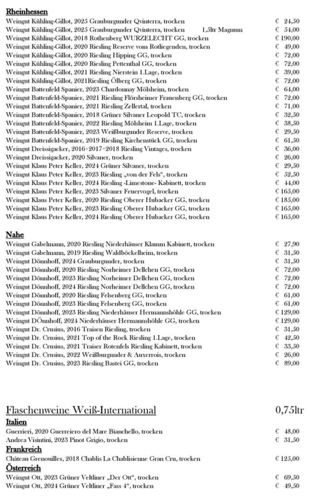 Seit 2020 wachsen wir mit einer Weinkarte, die nicht laut sein will, sondern leise nachklingt.